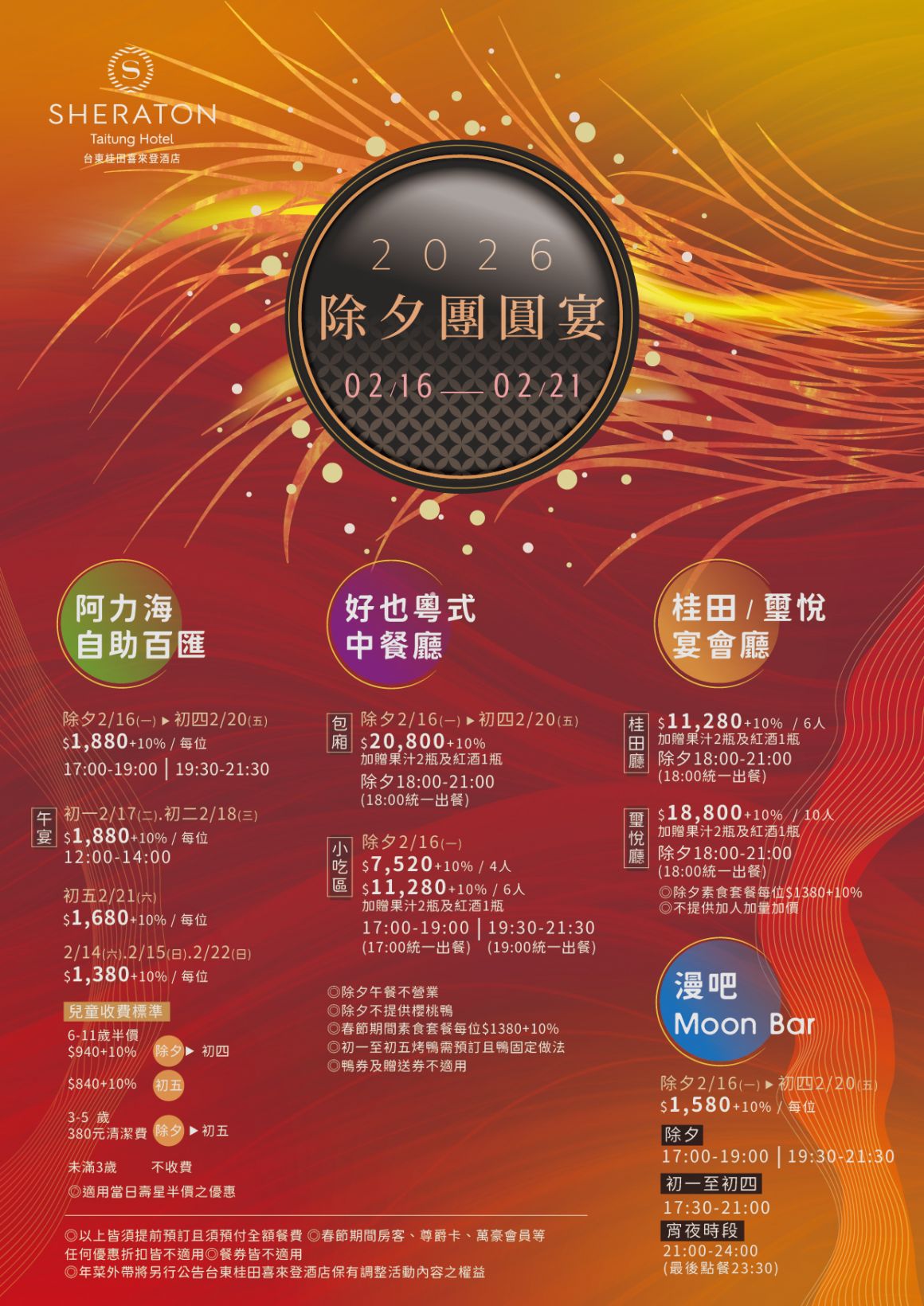 ★年菜外帶將另行公告,台東桂田喜來登酒店保有調整活動内容之權益